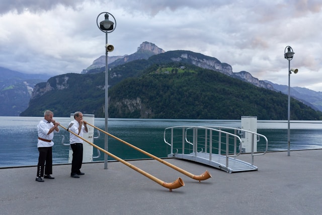 The International Alphorn Festival in Nendaz, Switzerland, is an annual celebration of the traditional Swiss instrument, featuring an official competition, performances by numerous alphorn players, traditional folk parades, and concerts. The event also includes related folklore, such as traditional dances and folk groups, creating a comprehensive festival atmosphere. The competition uses a blind audition to ensure fairness.