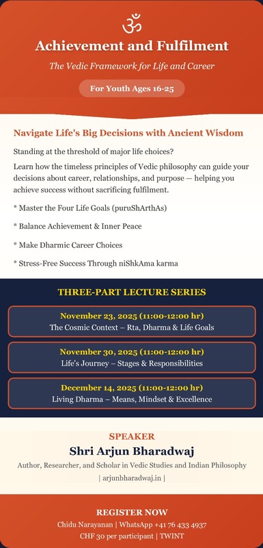 A 3-part online course by Shri Arjun Bharadwaj on 23rd, 30th of November and the 14th of December, 2025 from 11 to 12 hrs (online).