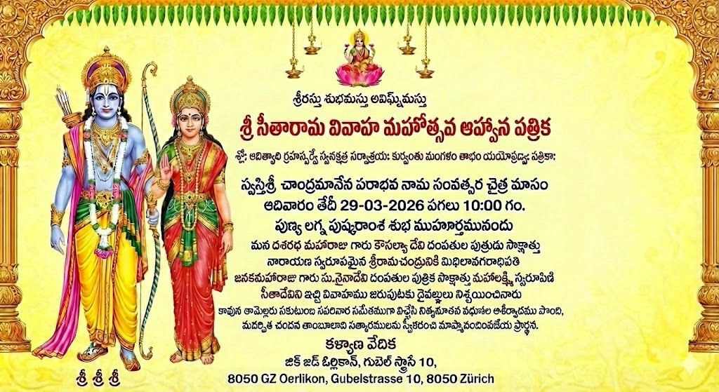 Ugadi & Sri Sita Rama Kalyana Mahotsavam, Bern, 22.Mar.2026 Ugadi & Sri Sita Rama Kalyana Mahotsavam, Bern, 22.Mar.2026 Read Post »